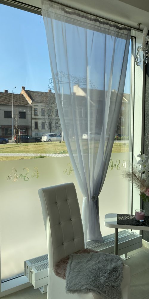 Polep výloh prodejny pískovací folií