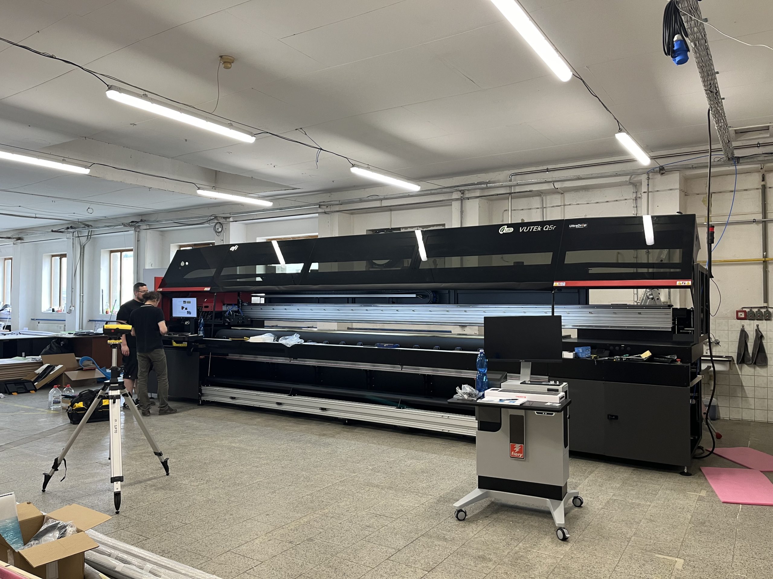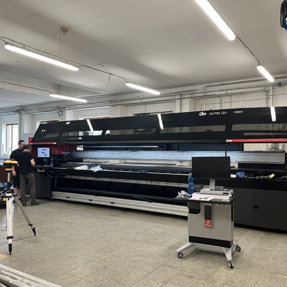 Instalace UV rolové tiskárny EFI VUTEk Q5r maximální rychlost tisku 672 m²/hod v šířce 5 m !!!!!