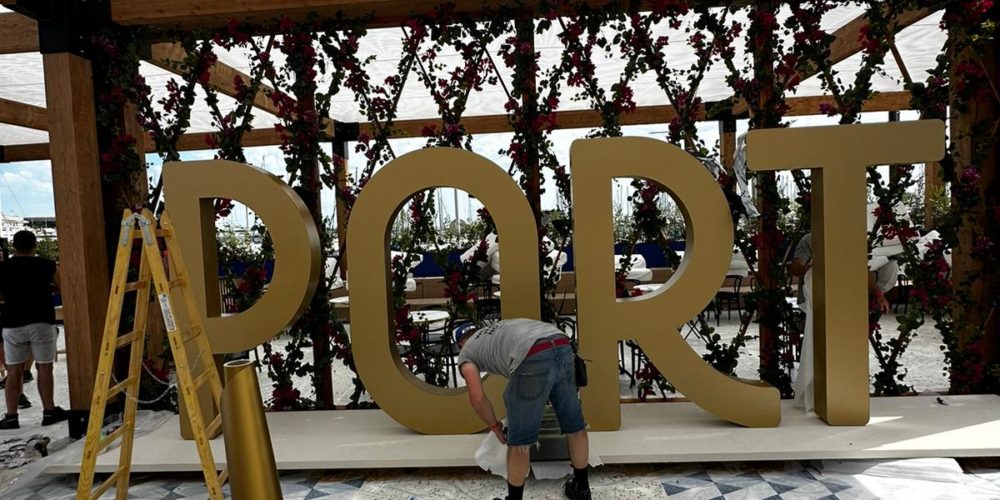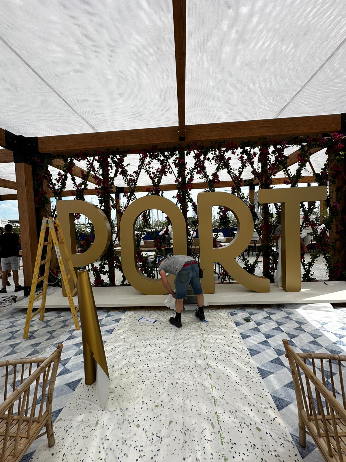 venkovní textilní stěny a plastické nápisy CANNES