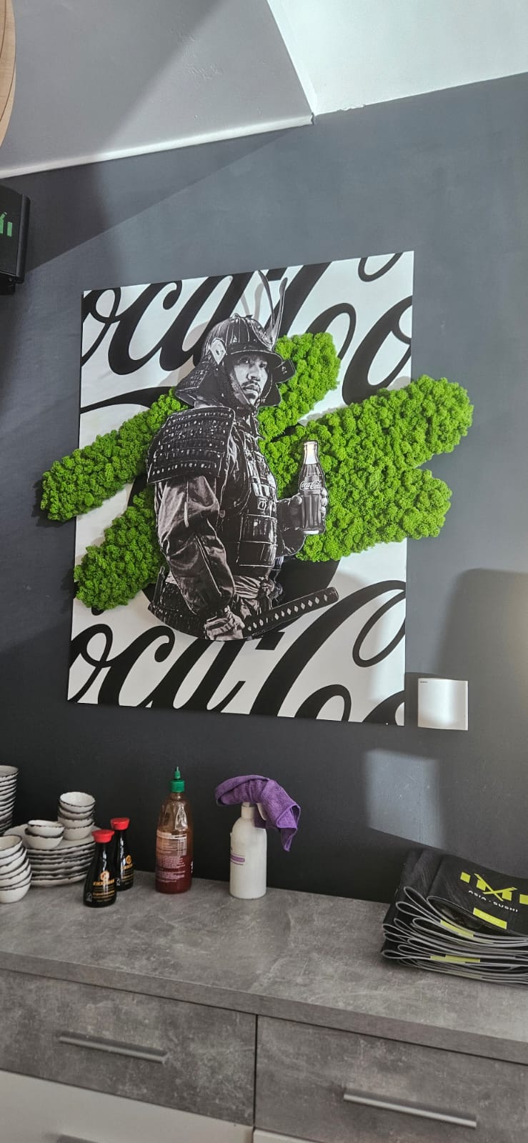 kombinace mechu , plexi a grafiky v interiérech